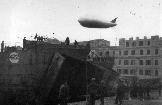 The Sinking of LST-422: LST-422 was Lend-Leased to Great Britain in late 1942. As part of the Royal Navy, she was captained and crewed by British Naval personnel, although she was in this case transporting American personnel, arms, and equipment. LST-422 departed Naples, Italy the night of January 25, 1944, loaded to capacity with trucks, Jeeps, M3 halftracks, ambulances, and other vehicles. She also carried many 50-gallon steel barrels of gasoline lashed to the deck, plus a variety of ammunition. The personnel were Companies C, D and Headquarters of the American unit 83rd Chemical Battalion, Motorized. This unit operated batteries of 4.2" mortars, firing white phosphorous, smoke, gas, and high explosive shells. Many of the trucks were loaded containing the very volatile white phosphorous 4.2 inch mortar shells. The LST-422 was part of a convoy of 13 LSTs. She was commanded by Lieutenant Commander Broadhurst, Royal Navy. In his report on the sinking of the LST-422 he wrote: